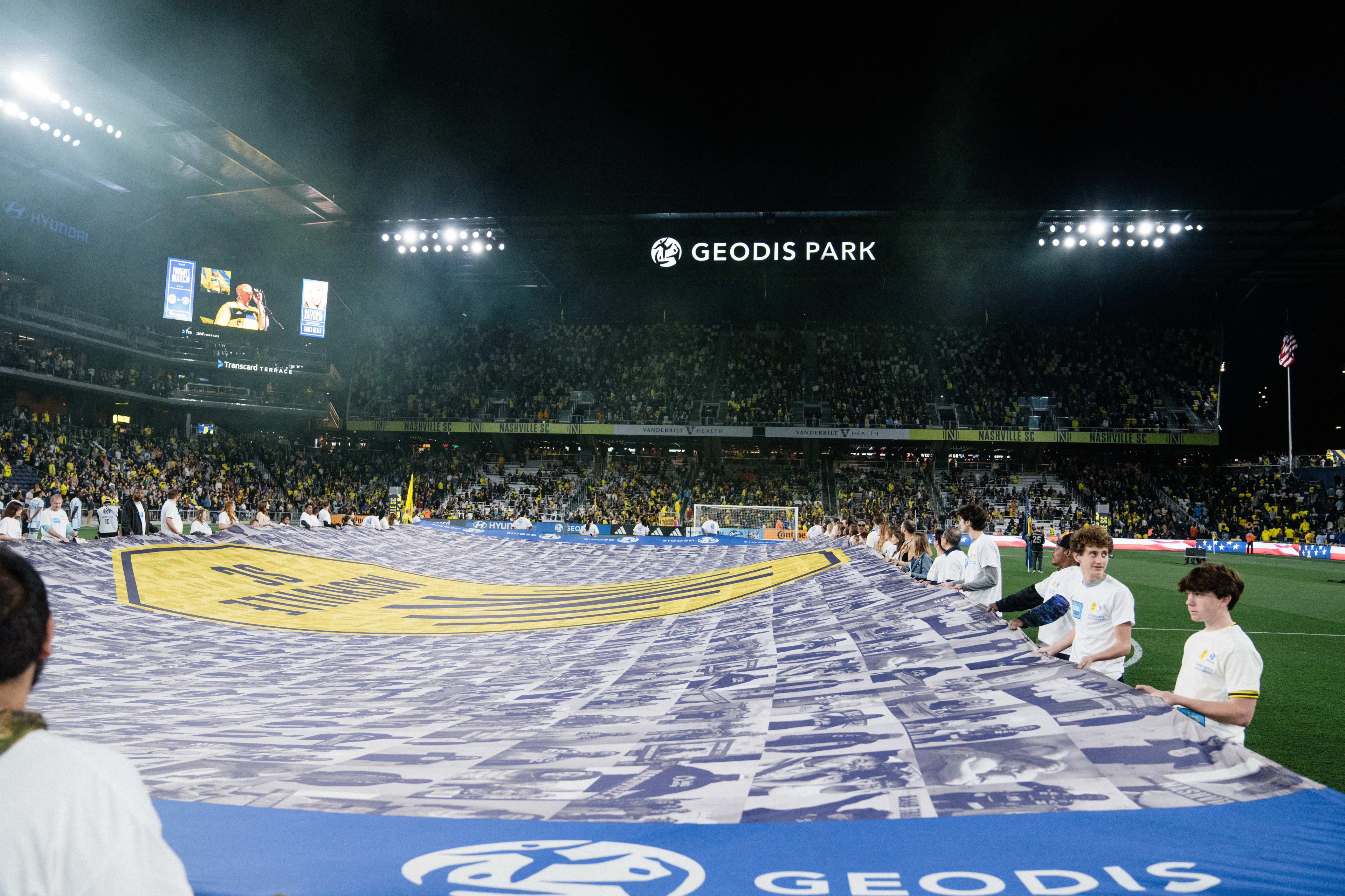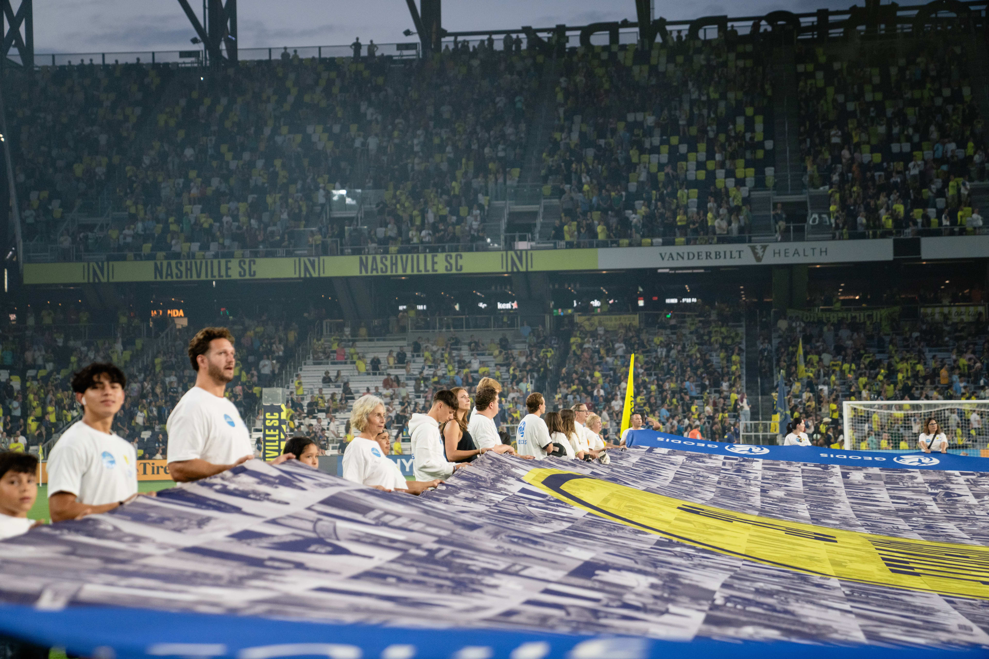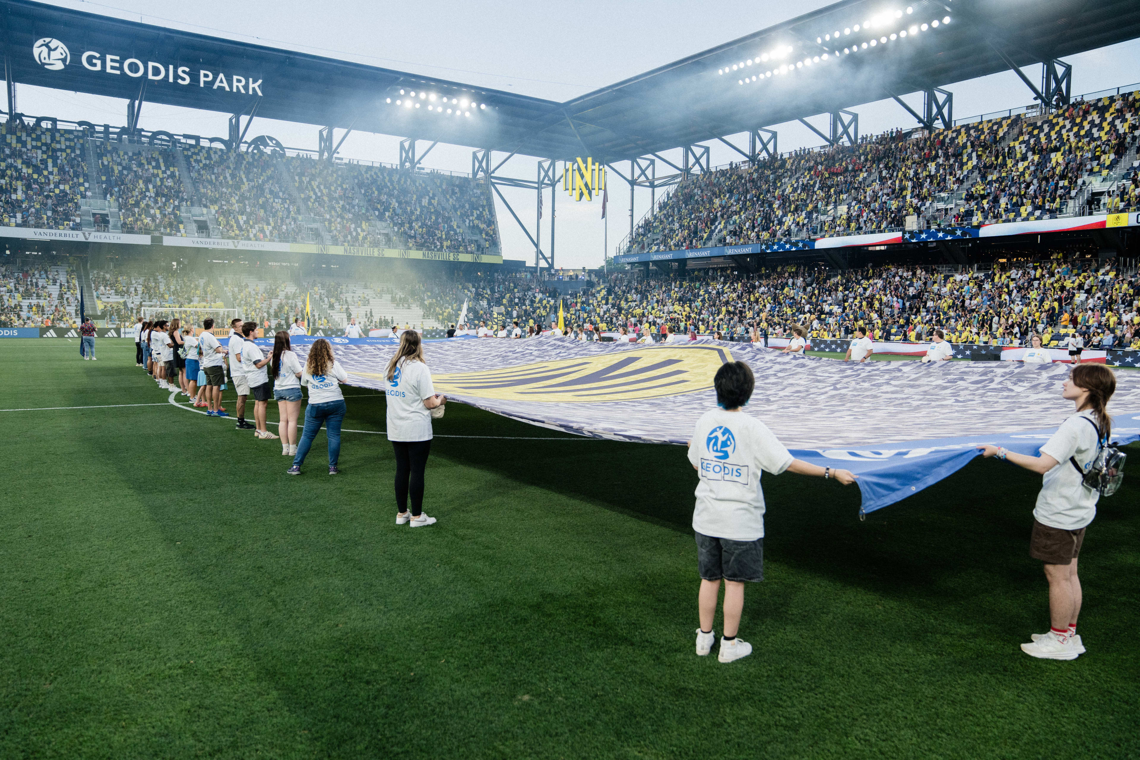 The GEODIS Community Flag is a collection of images representing Nashvillians from all walks of life. It symbolizes our motto: One Nashville Under Gold, and the league’s Soccer for All initiative which signifies everyone is welcome in Major League Soccer regardless of race, color, religion, national origin, age, gender, gender identify, disability, sexual orientation, or economic status. The GEODIS Community Flag is displayed at each home match and highlights our fans, supporters, local community partners and the people of Nashville and our region as a whole.