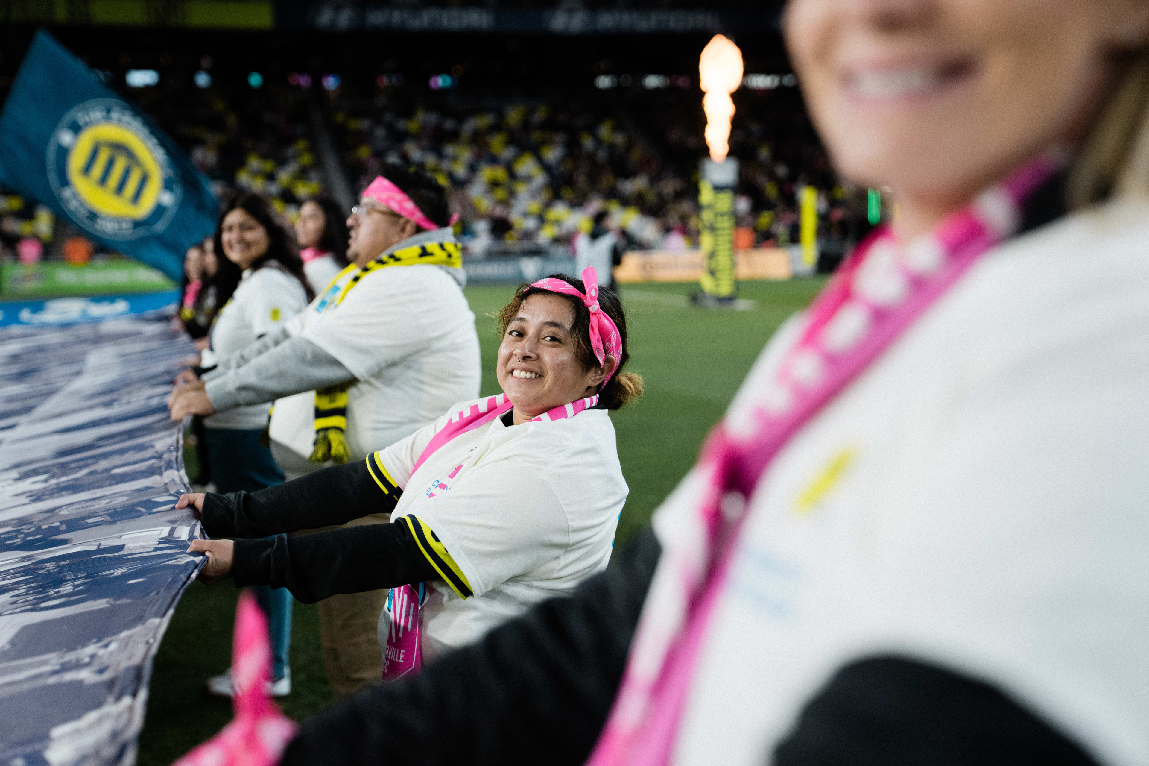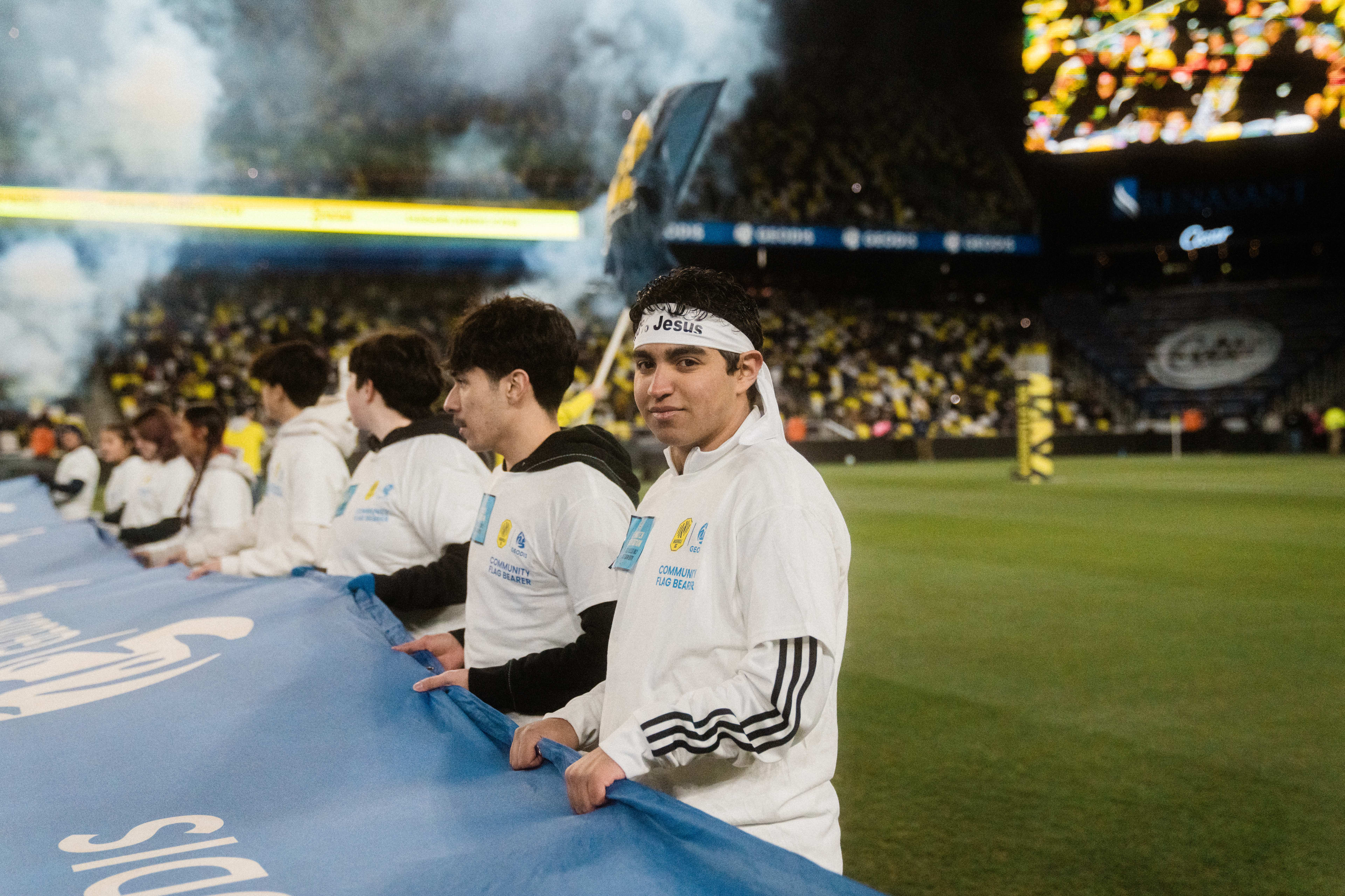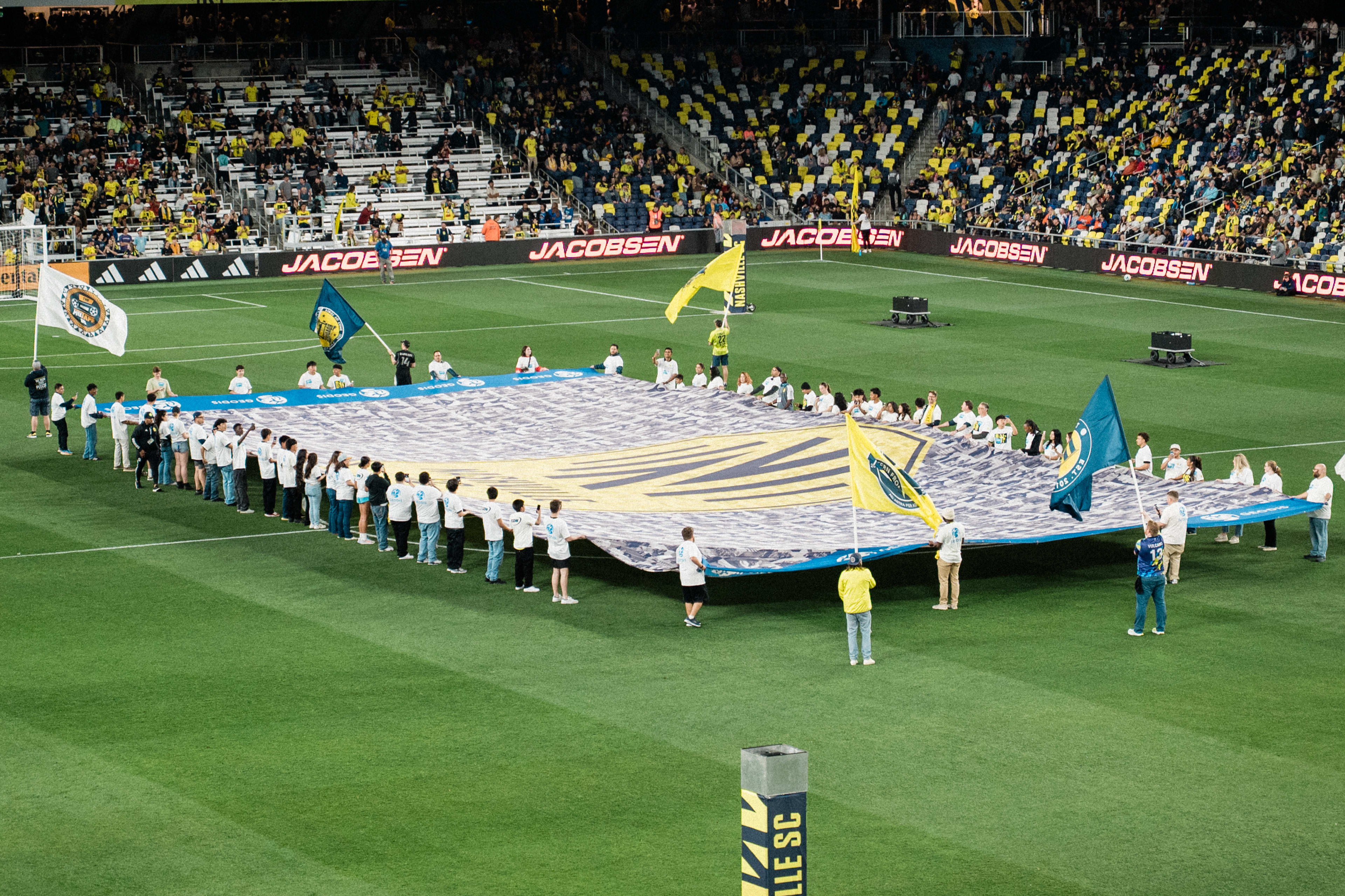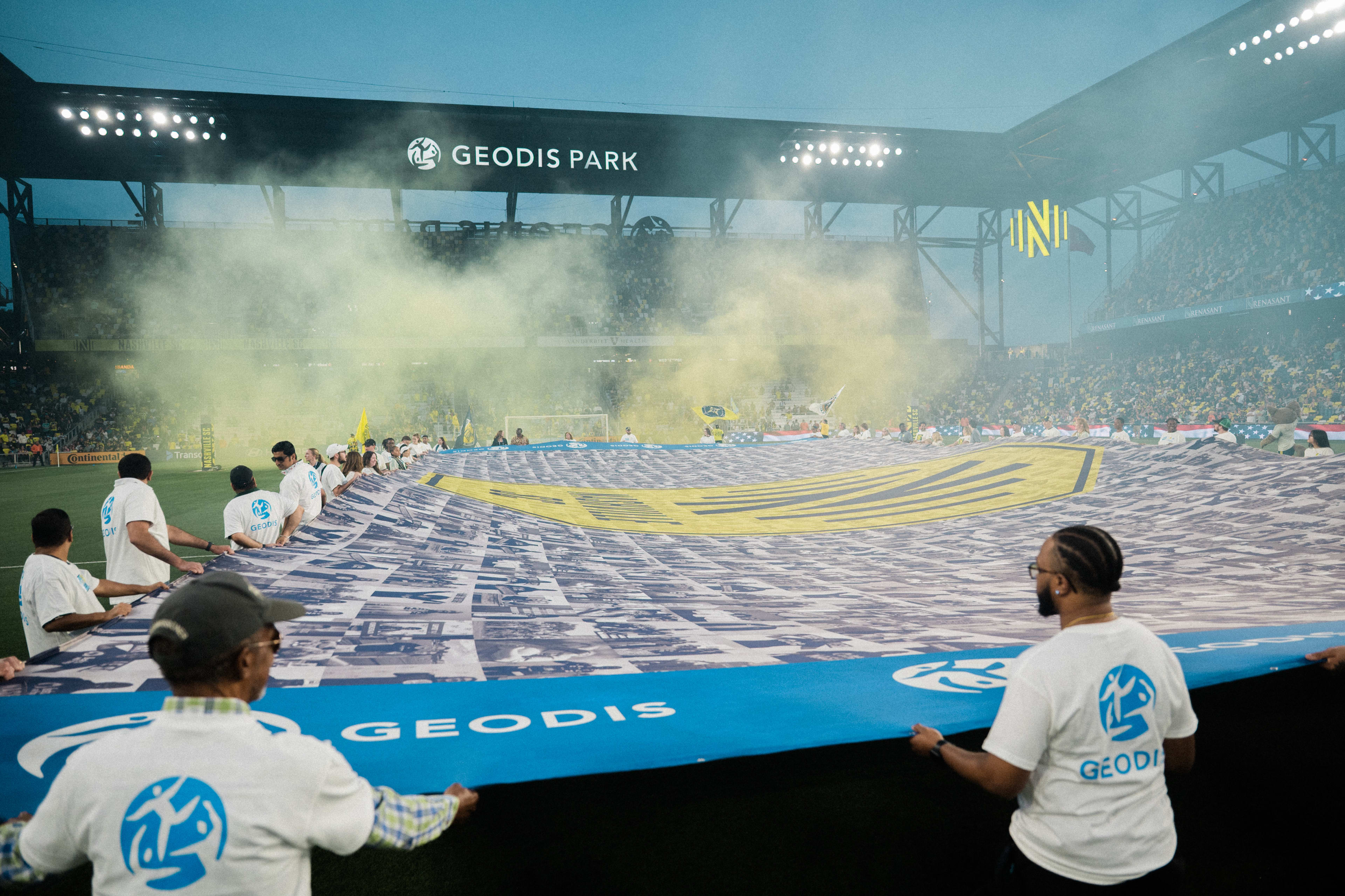 The GEODIS Community Flag is a collection of images representing Nashvillians from all walks of life. It symbolizes our motto: One Nashville Under Gold, and the league’s Soccer for All initiative which signifies everyone is welcome in Major League Soccer regardless of race, color, religion, national origin, age, gender, gender identify, disability, sexual orientation, or economic status. The GEODIS Community Flag is displayed at each home match and highlights our fans, supporters, local community partners and the people of Nashville and our region as a whole.
